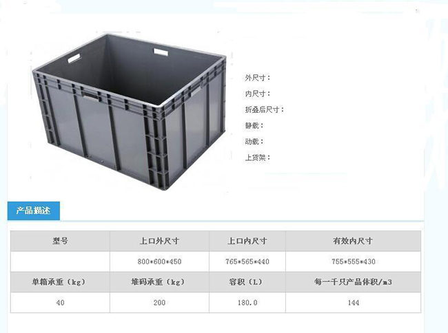 塑料箱(內尺寸765X565X440 外尺寸800X600X450)